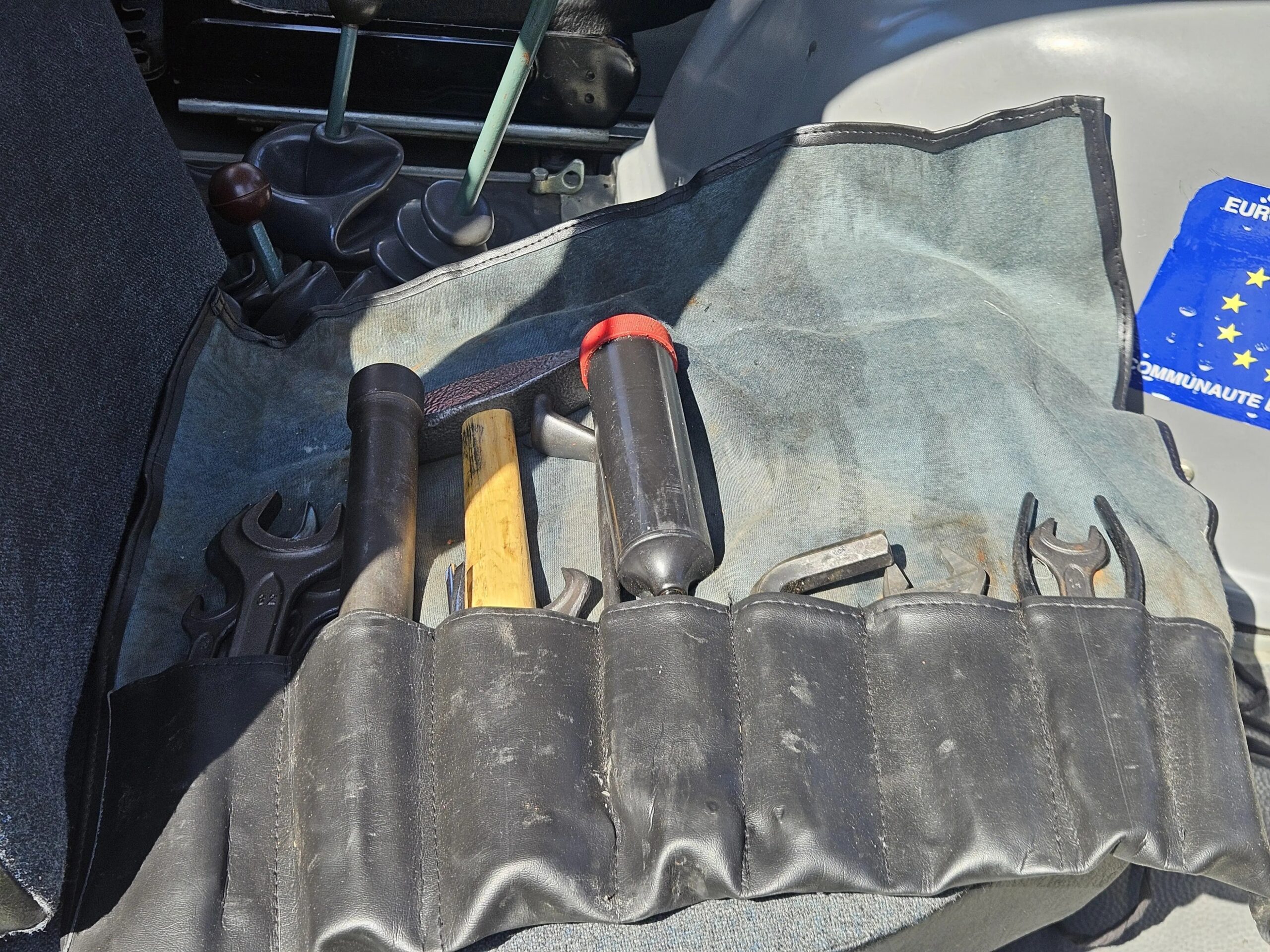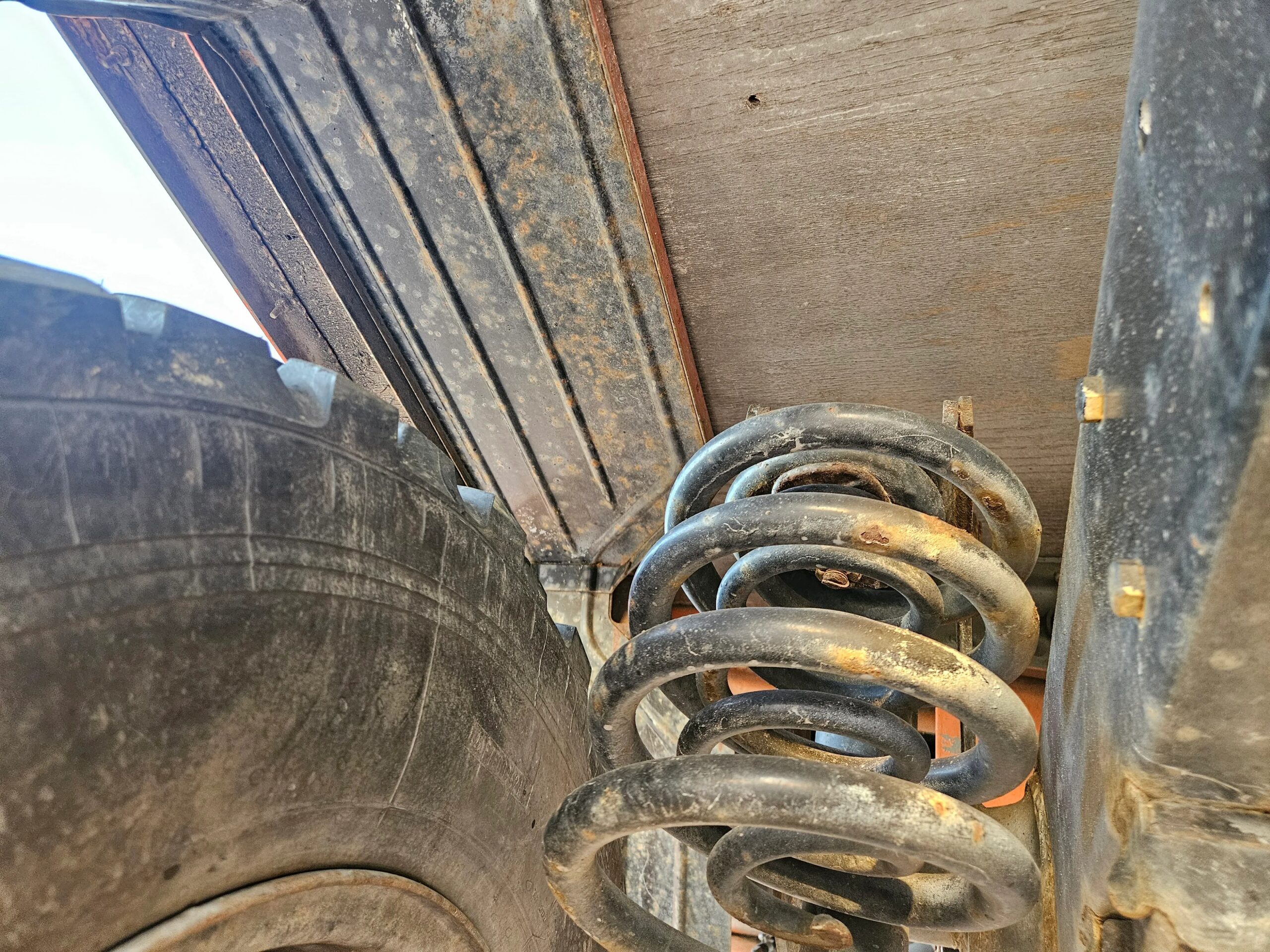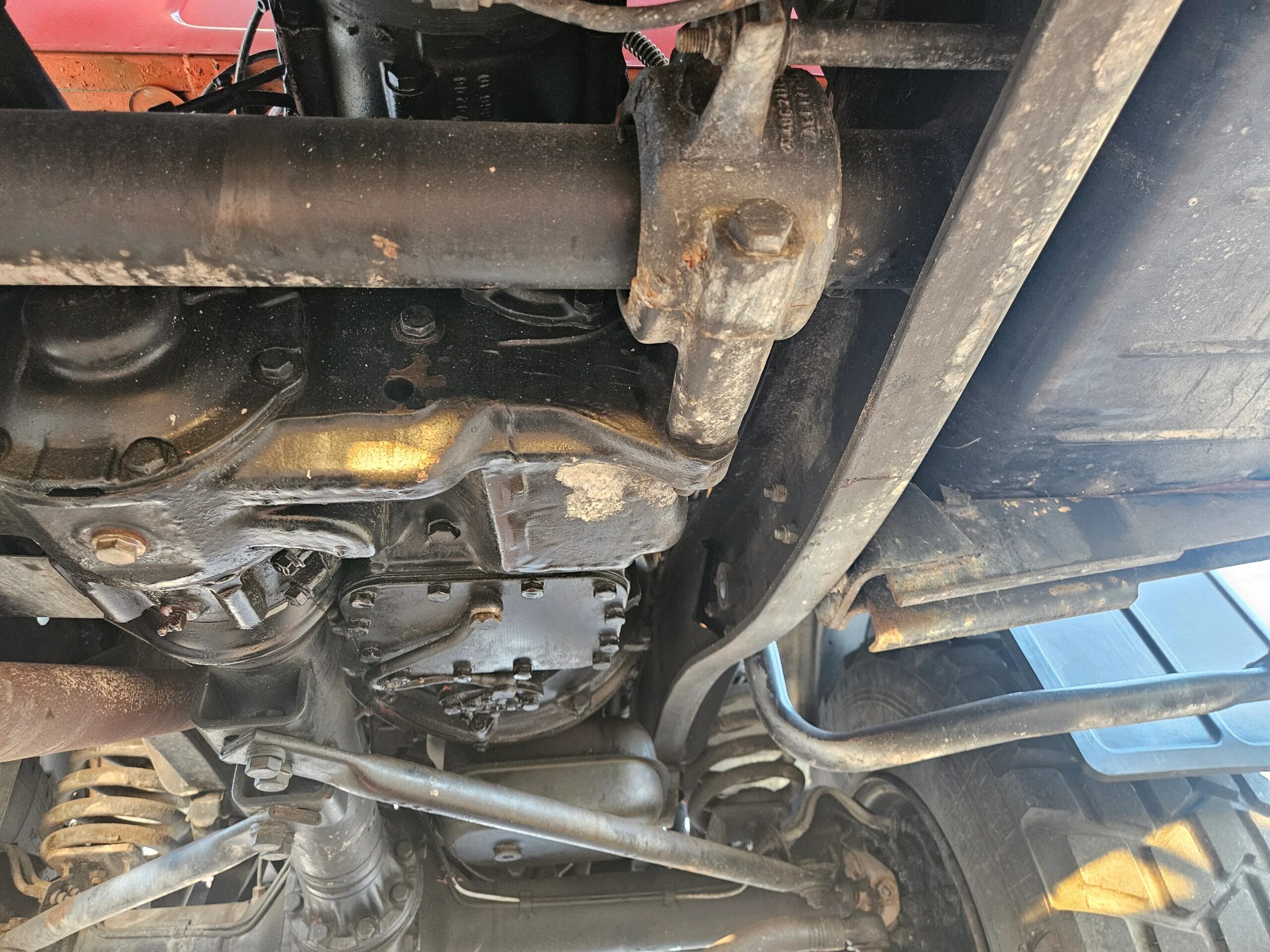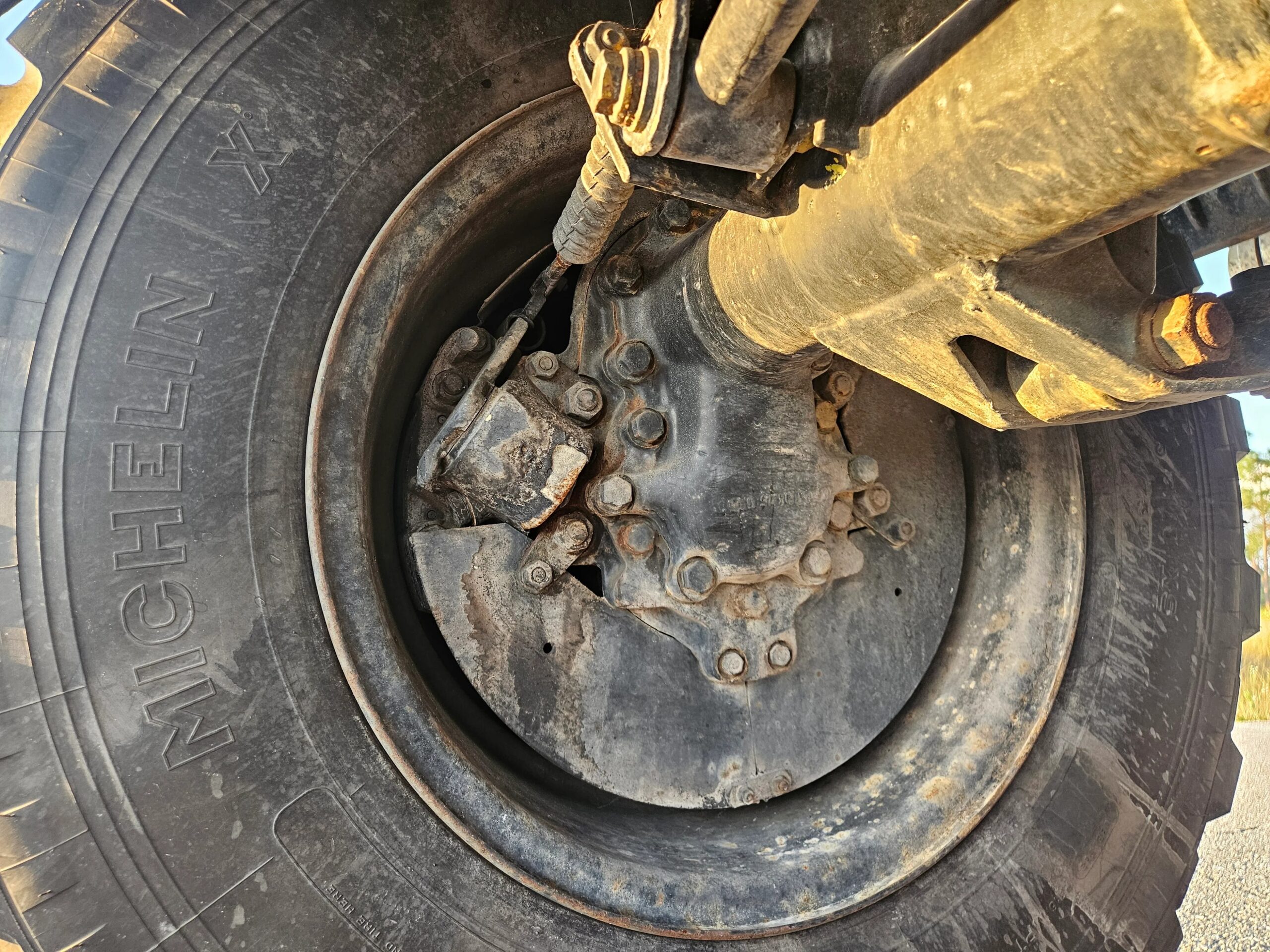 The 20” steel wheels were painted black by the selling dealer and are mounted with Michelin X tires. A matching spare is mounted at the front of the bed, and the truck is equipped with disc brakes at all four corners.