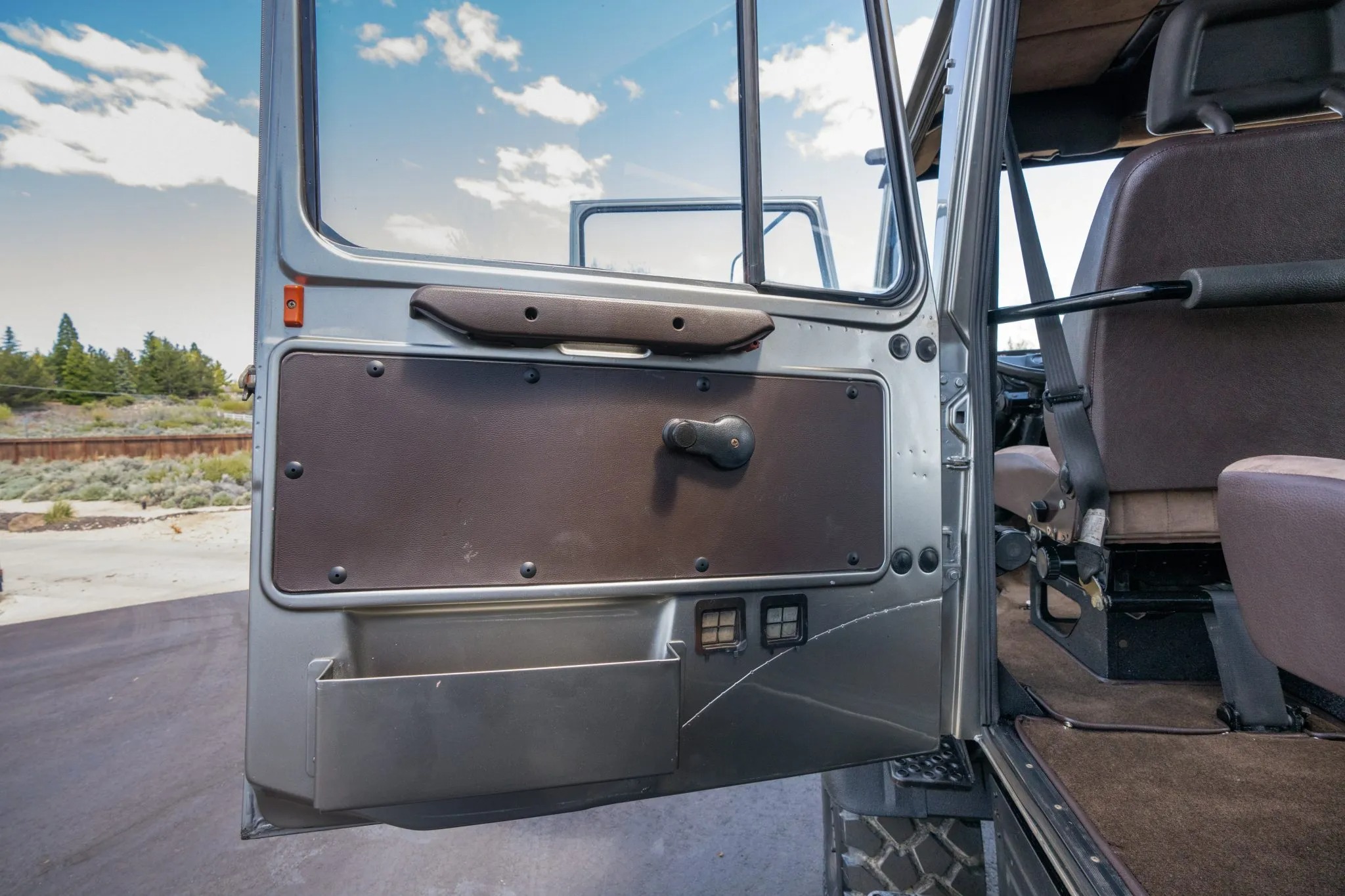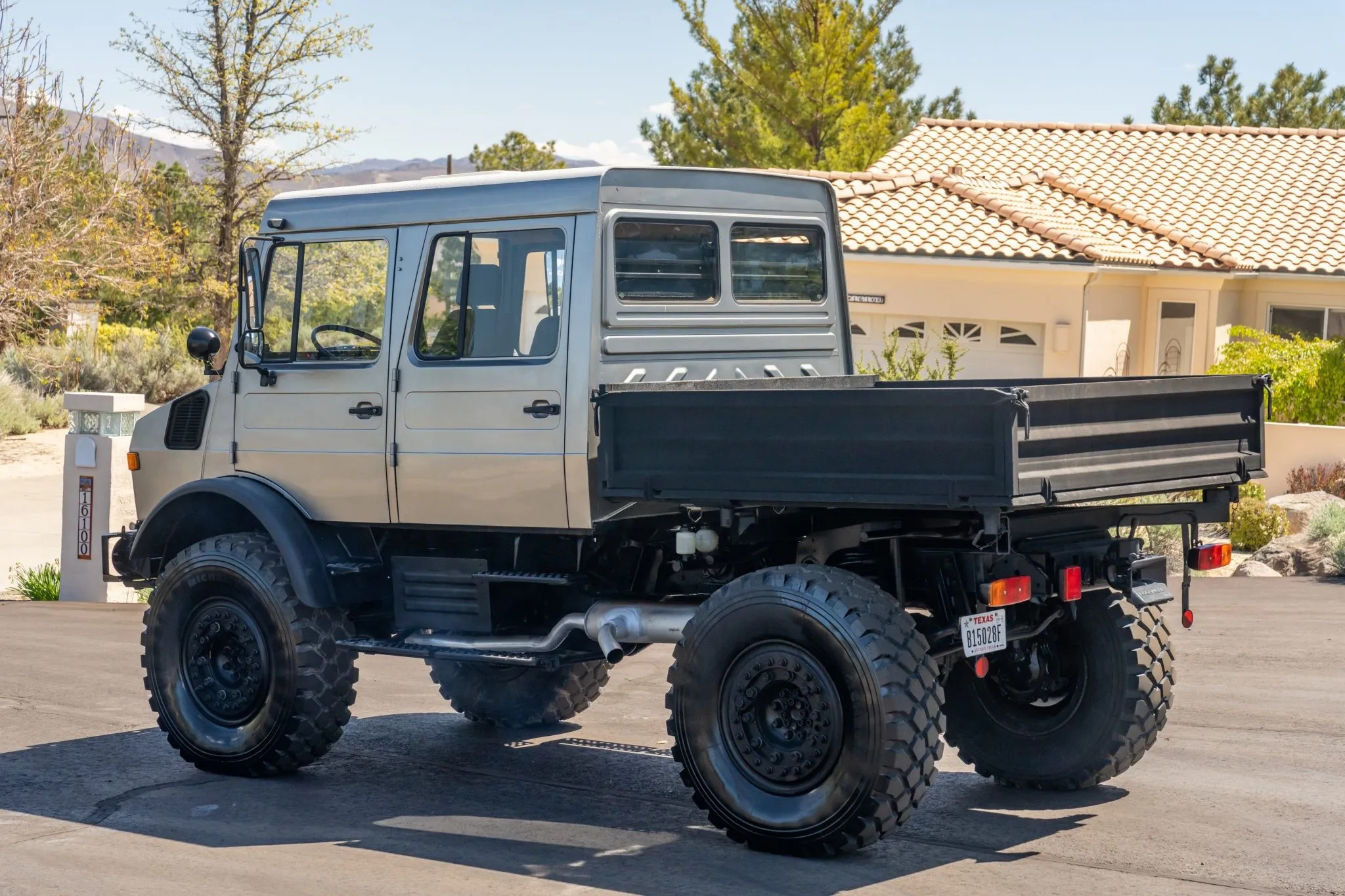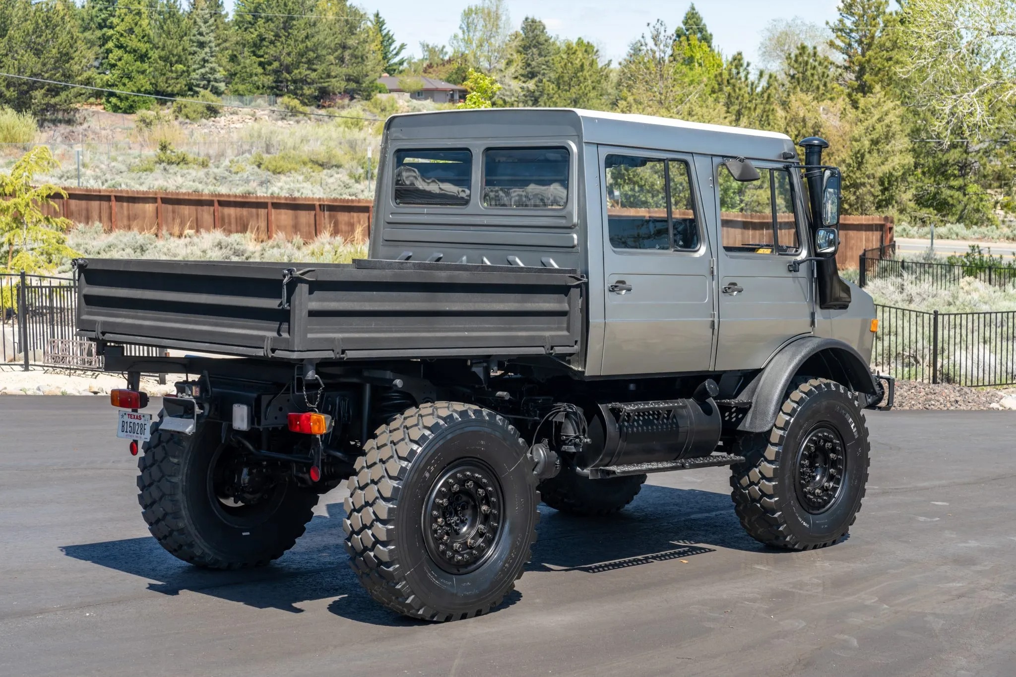 This 1991 Mercedes-Benz Unimog is a 427-series U1650L Doka model that shows 57k kilometers (~35k miles), and it is powered by a 6.0-liter OM366 turbodiesel inline-six paired with a 32-speed UG3/65 manual transmission. Subsequent work has involved repainting its high-roof cab, refreshing its six-passenger interior, replacing its wheels and tires, and overhauling its disc brakes and portal axles, which have “super-fast” gearing for highway operation. Additional equipment includes a hydraulic three-way dump bed, a front power take-off, and three locking differentials. This square-body Doka is offered with a data card, spare parts, service records and receipts from current ownership.