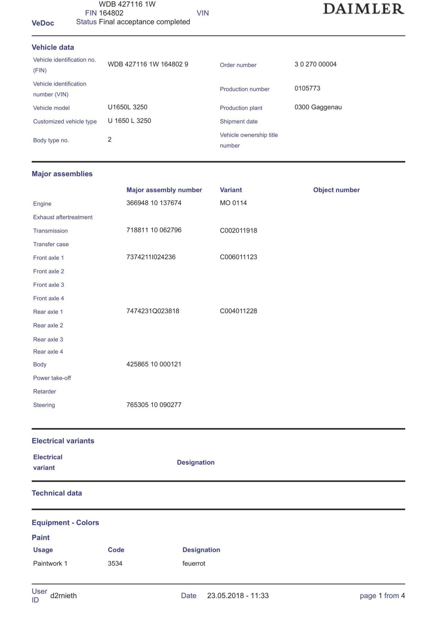 Chassis: WDB4271161W164802